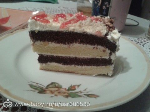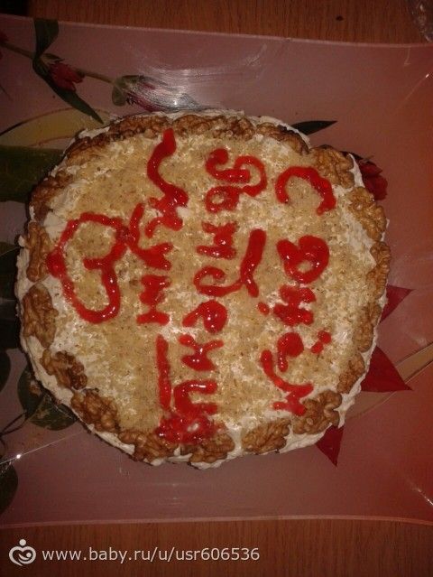 Вчера отмечали день рождения мужа втроем (муж, сын и я). Ночью перед др испекла торт в первый раз!)
