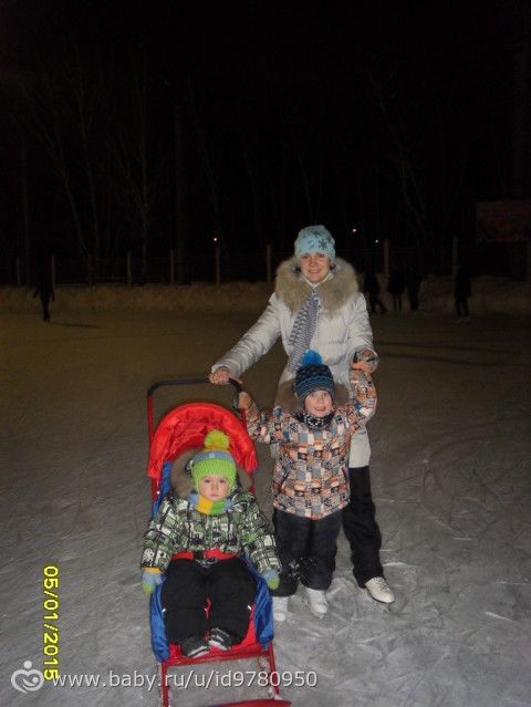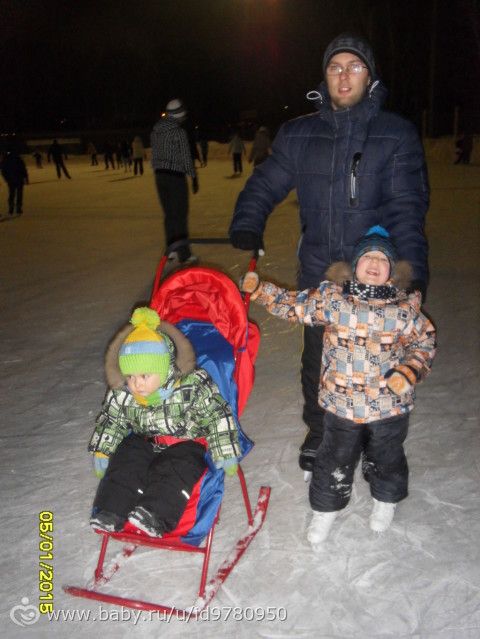 5.01 пошли на открытый каток в СК «Юность». купили Максиму коньки с двухполозным лезвием и решили их испробовать. результат на лицо, Максим сам без помощи стоял на льду, держал равновесие при передвижении. катанием это конечно не назвать, но хоть так :)