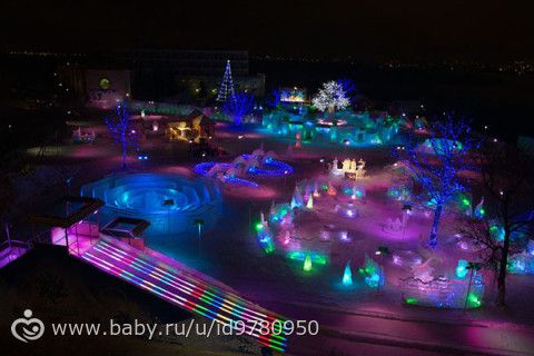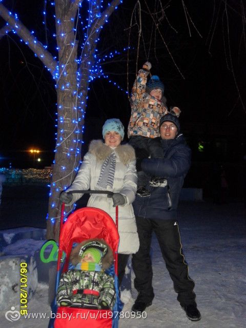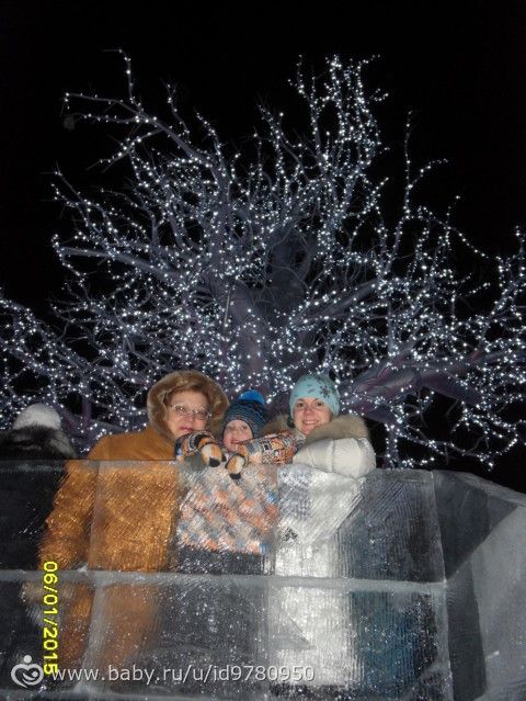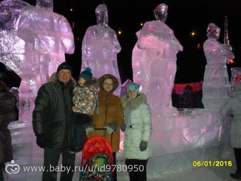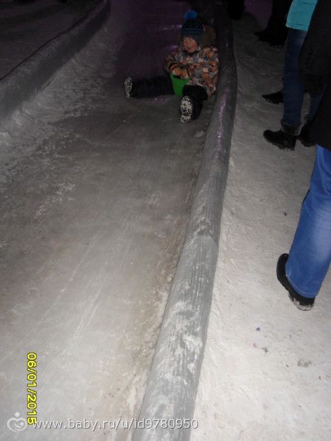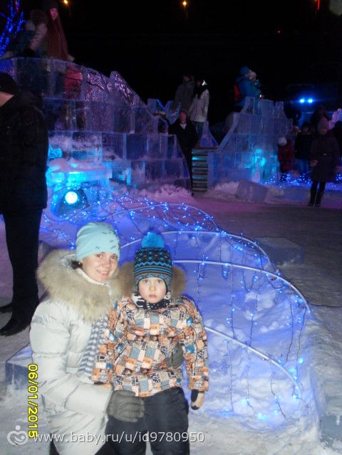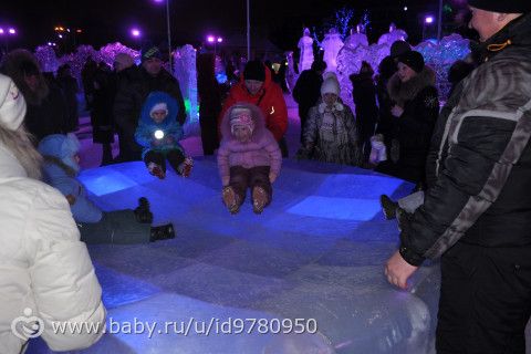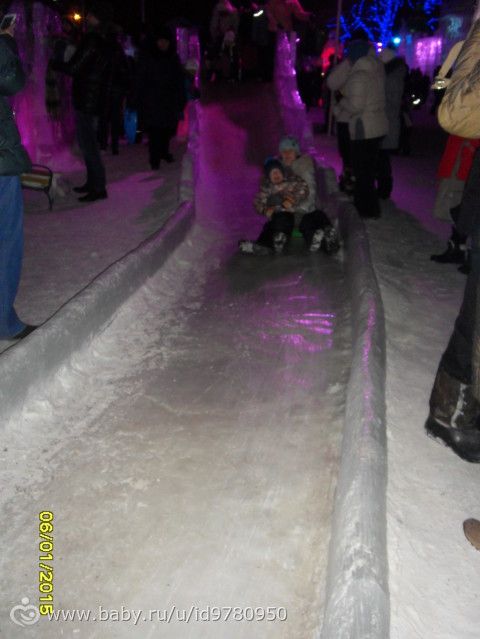 Поехали к моим родителям и забежали в магазин, купили мне новую сковородку, а потом решили поехать с родителями в ледовый городок «Беловодье». Очень понравилось там, правда большие горки были закрыты из-за тёплой погоды, но мы на других покатались. очереди на горки большие были, поэтому по пару раз съехали с нескольких горок и то хорошо :) прогуляли почти два часа, незаметно как-то пролетели. Никитка полпрогулки спал :)