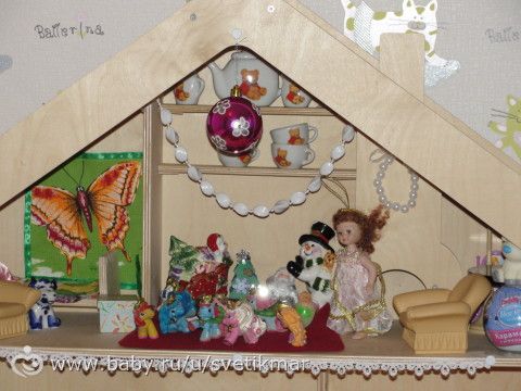 Хозяйка домика Дюймовочка украсила домик бусами и красивой тесьмой. Получилось очень нарядно.