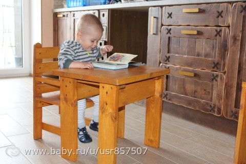 я не присматривала, нам подарили. но есть в нем минус: у стола и стульчика ножки крест-накрест. и вот стул один раз сложился так, когда ребенок с ним играл. Благо не сидел на нем. Так что я бы такой не взяла. А спинка у стульчика должна быть.