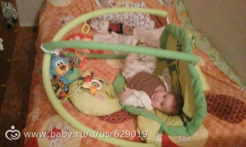 Что мы умеем: поем и визжим когда включаю музыку, играем на ковриках(у нас их2) в шезлонге сидим уже реже, Даня проваливается в него что ноги его достают до лба, выросли видимо ))пытаемся с полу лежачего положения сесть, хватается за все сильно, иногда подымаю с кровати со всем что на ней лежит)) появились две игрушки любимые маленькая мышка и зайчик, на нг подарила мама моя, болтаем агу, ляля, галя ) и издает такие звуки будто полоскает рот и языком смешные вещи делает, очень любит бесится так сказать, хохочет и улыбается, короче радует меня мой мальчуган ![]()