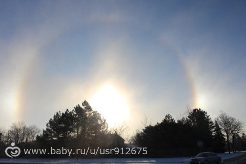 На фото -это называется «солнце в рукавицах», когда так радуга зимой проявляется, я тоже раз видела в мороз, удивлялась.с наступившим вас 2015 годом!!! С Новым счастьем !!!