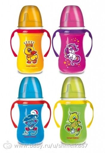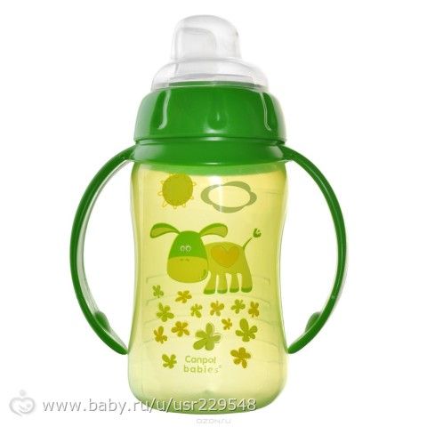 Поильники разные, кружки непроливайки тоже, с трубочкой разные тоже есть. Из стакана даю. Бутылки всех мастей тоже были, давно не доставала. Компот варила.