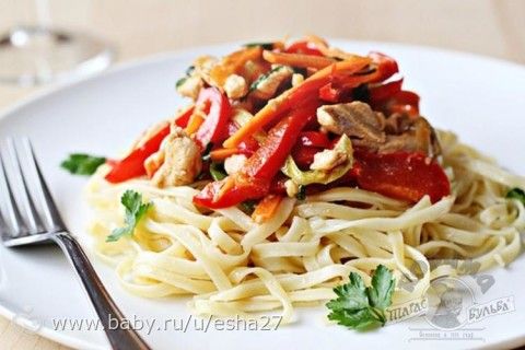сегодня еще не придумала) вчера были спагетти с курицей и овощами! вкусно очень!!! примерно вот так выглядело)