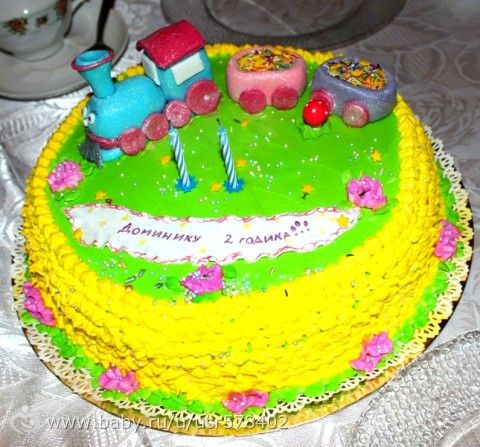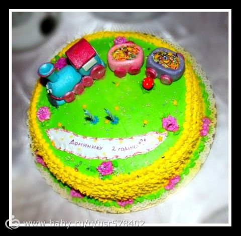 Ну что ж, добралась я написать, что нам исполнилось 24.01.15 — 2 годика. Перечислять, что мы умеем я не буду, так как это долго, да и в таком возрасте многие детки очень много умеют, так, что Доминик обычный ребёнок, без всяких супер способностей. Любознательный, очень нравится ему всё, что с техникой и инструментом (настоящим)связано. Доминька у нас богатырь (как по мне), вес 15800, рост92. Вещи не маломерки покупаем на 3-4 года. Пока мы ещё на ГВ! Удивились??? я сама себе удивляюсь!!! Думаю февраль, месяц для закругления будет. Очень любит паровозики, называет их тю-тю. Вот и торт поэтому с паровозиком. Торт заказала кремовый, внутри шоколадный, с шоколадным кремом и очень вкусной пропиткой, только паровозик из мастики.