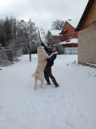 Но! Заметьте, мы его воспитывали так, чтобы он не признавал никого кроме нас, чтобы понимал что человек чужой. Вообще порода умная, дрессировке поддается легко, но ею надо заниматься много, воспитывать и характер должен быть у хозяина.