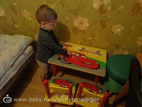 у нас есть такой маленький стул и стол, она там рисует, но кушать не хочет