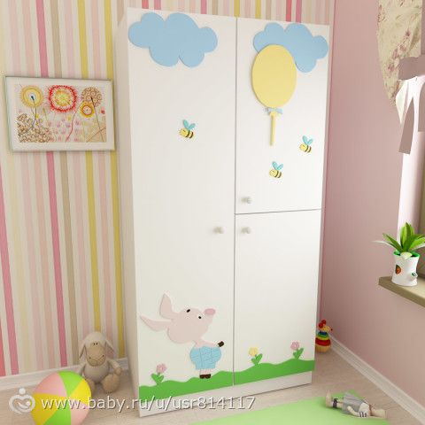 поэтому решила купить белую мебель (например, икеа, цена шкафа около 5000) и на нее прилепить вот такого Пятачка и цветочки, сердечки и пр.