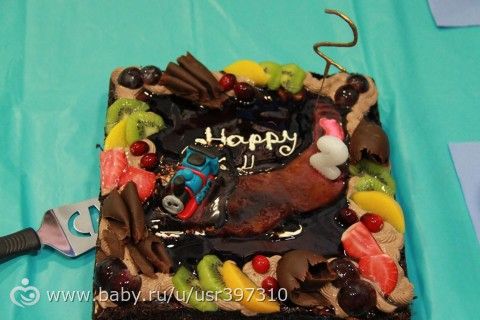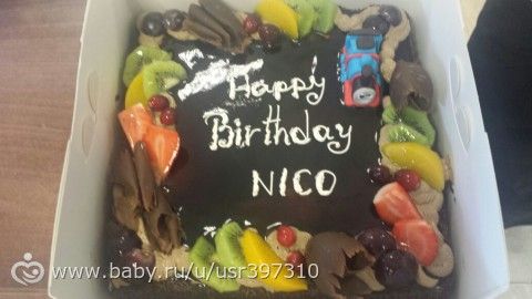 Девочки. Рассказываю. На двух летит ребенку мы организовали пати в детском центре. Я заказала отдельно торт с фруктами и с Томасом. На черном шоколадной фоне должна была быть надпись Happy Birthday Nico 2.