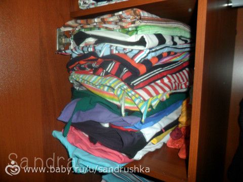 на второй полке какие-то джинсы, которые надо подремонтировать, что ли....