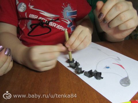Первый — в технике торцевания, уже пробовали её, но в тот раз всё больше я трудилась, в этот раз всё иначе, я только показала первые две „колючки“, дальше он сам...
