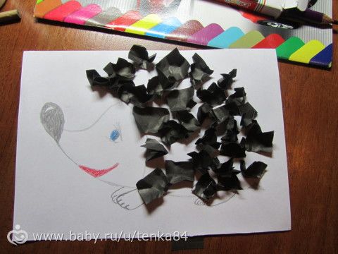 нарезаешь бумагу квадратиками, для первого раза лучше покрупнее (эти были примерно 1.5х1.5, но можно было еще чуть больше), затем каранашик (не грифелем, а то продырявит) соединяешь с серединкой квадратика и загибаешь уголочки (как бы наматываешь бумажку на карандаш), придерживаешь за уголочки (держишь, как если бы на карандаше был ластик и ты стирать им пыталась) и приклеиваешь на заранее намазанный клеем листик (я капала несколько капель ПВА, чтоб он сразу видел куда клеить), чуть придавила, убрала карандаш.