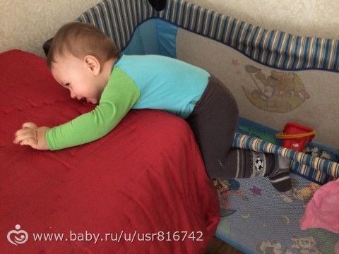 это фото старенькое, это он только делал попытки месяц назад, так мы тогда одеяло убрали, чтоб схватиться не мог, а сегодня таким макаром тихенько вылез! А еще сегодня папа поснимал все ручки с дверей с одной стороны! Буквально вчера малому еще см так 4 не хватало дотянуться до ручки, а сегодня прям раз и все! Все двери открывает))).