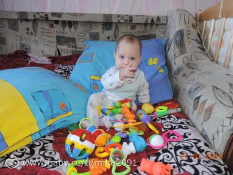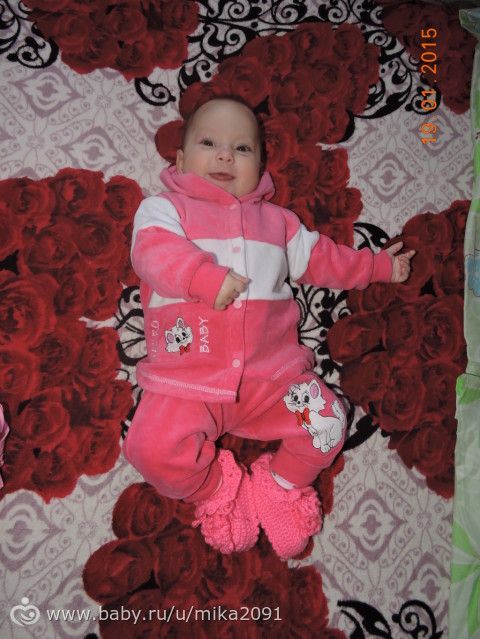 Наши достижения: крутится как веретеносидим; прыгаем в прыгунках, очень любим это занятие; пытается ползти, но не понимаем как это сделать; уже ввели прикорм, очень любим цветную капусту и кабачок...