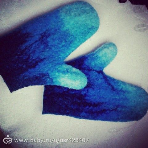 Да простят меня все валяльщицы мира, но с чего- то же надо начинать:) Мои первые валяные варежки из натуральной шерсти. Это конечно жуткая жуть, но вполне носибельные и теплые — проверено на себе )))