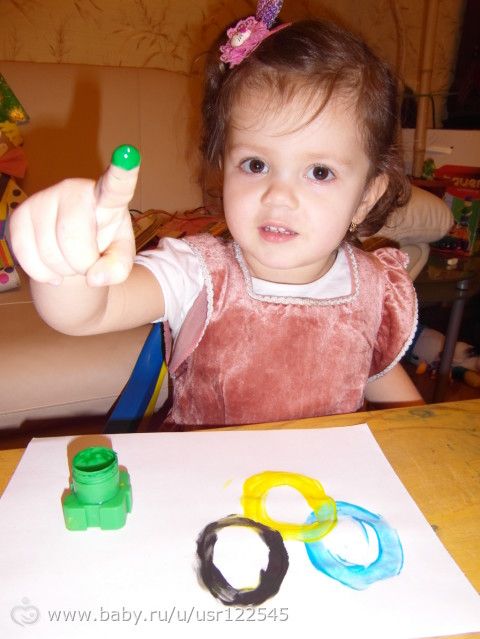 Нарисовали кольца Олимпийские пальчиковыми красками.