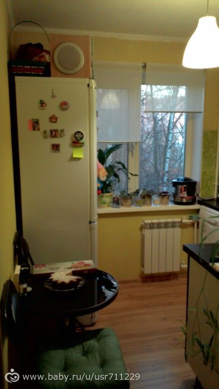 в результате, для того что бы влезла посудомойка — поменяли батарею и нижний шкаф, ранее стоящий у окна, вместо посудомойки, представили к стене напротив окна. Мне пришлось пожертвовать местом. А муж и так мечтал о чем то типа барной стойки :-) у него сразу три мечты сбылись! :-)