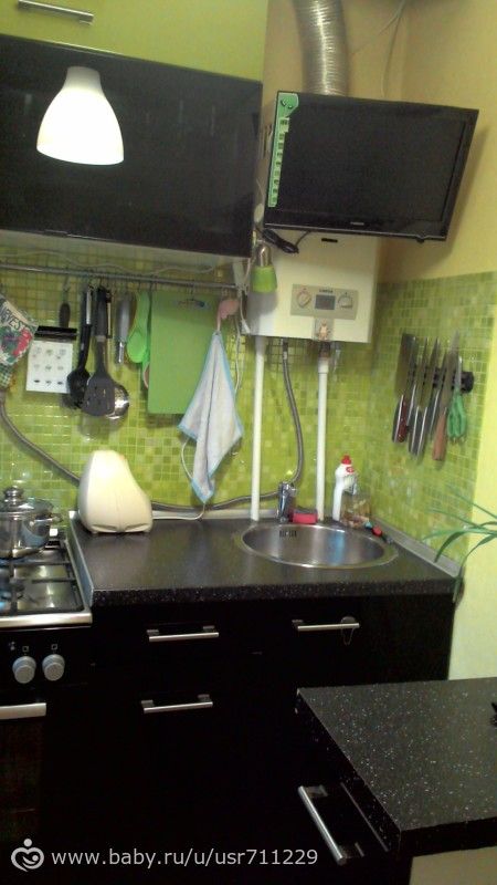 Ответить: HelgasУ нач тоже выпирает ванна. У нас посудомойка 44.5см, пплита 60, и мойка со шкафчиком 90. Итого 2 метра. до нас там тоже была мойка, плита и шкафчик. Вы посмотрите, может и у вас получится? :-)