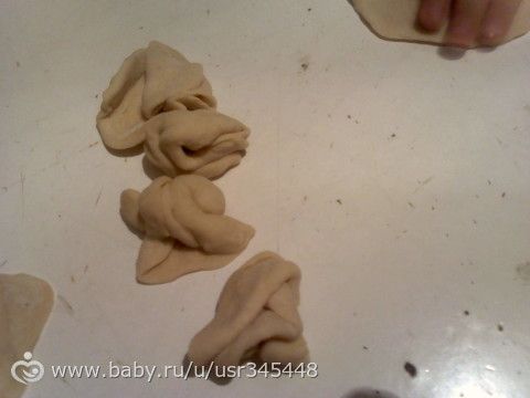 Она умеет и с мясом лепить, но в этот раз получились такие завитушки у нее!!! Лепешечки без начинки) Называется как хочу так и леплю)Мы с мамой мне всегда делали бантики из теста