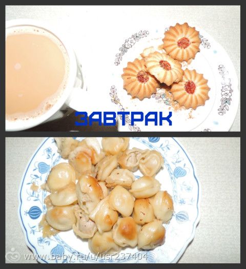 Очень захотелось пельмешек, а ни на обед, ни на ужин их низяяяяяя) вот на утро съела прям с привеликим удовольствием, тем более была ооочень голодная!!! ну и кофе с молоком и курабье