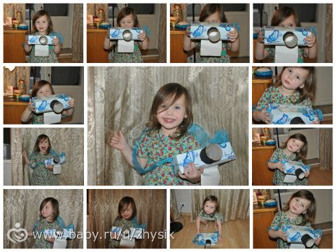 Далее с помощью меня мы продели бантик ведь мама фотик носит всегда на шеи, и сделали систему полароида))) вытягивая клеенку, (которая в рулоне замотанная на палку внутри самого футляра) она рисовала подбегала фоткала искала ножницы, отрезала и дарила папе фото- пап смотри это ты)))