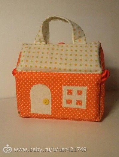 Сотворила вот такой домик-сумочку для девочки) Очень интересный и удобный вариант для игр в любом месте. Очень симпатичные пуговки — божьи коровки. Что вы об этом думаете?