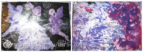 1. Рисовали на Фольге пальчиками, в том числе пользуясь траФаретами: