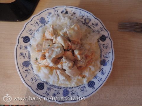 курица тушеная, рис немного сметаны
