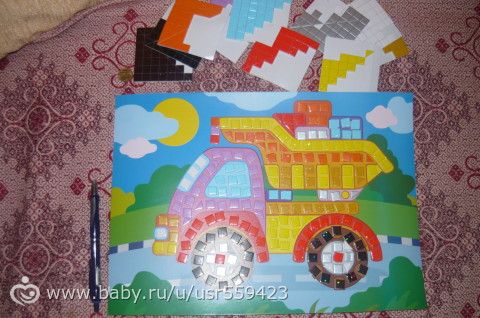Заказала Игорю (2 года 4 мес.) аппликацию в книжном интернет магазине (разноцветная мозаика для малышей 3+, Дрофа-Медиа) и пошла на УРА!!! Рекомендую для развития моторики детишек, учит ребенка терпению и усидчивости.