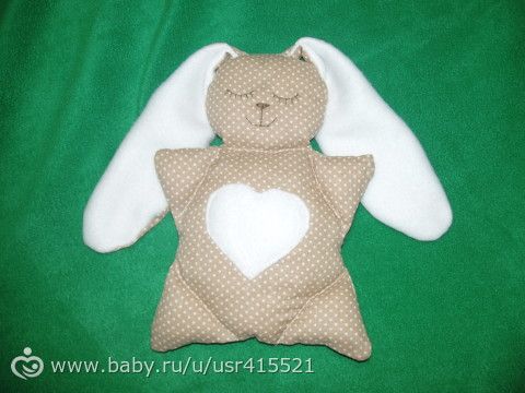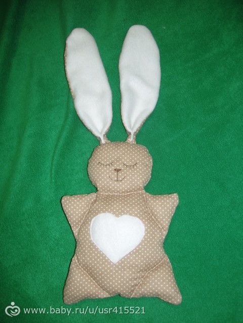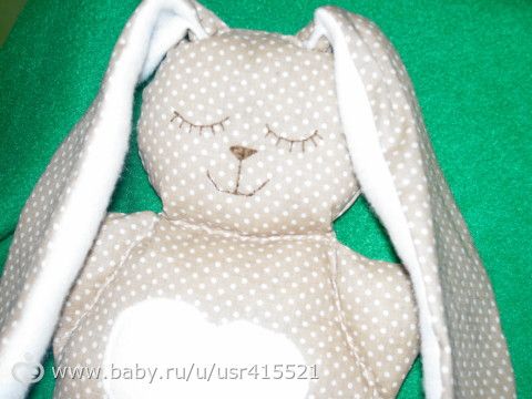 доброе время суток! малышку я каждый вечер качаю перед сном, но не одну она берет с собой большую игрушку собаку и я их обоих качаю. Устала, и сшила милого зайчика-сплюшку!