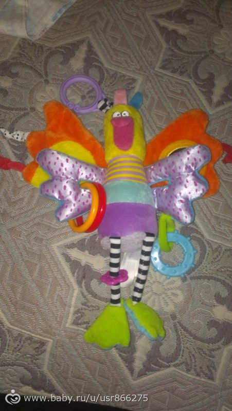 Расскажу немного о нас. Мы любим играть с определенными погремушками, больше любим мягкие игрушки, и только музыкальные. Самые любимые мягкие игрушки — цветочек и мишка (читает «я помню чудное мгновенье»).