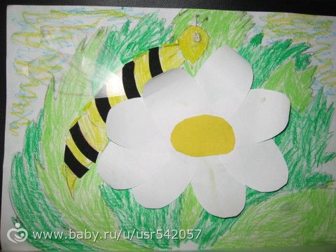 Лида рисовала пчелу на цветке. Идея взята из передачи «Давайте рисовать».