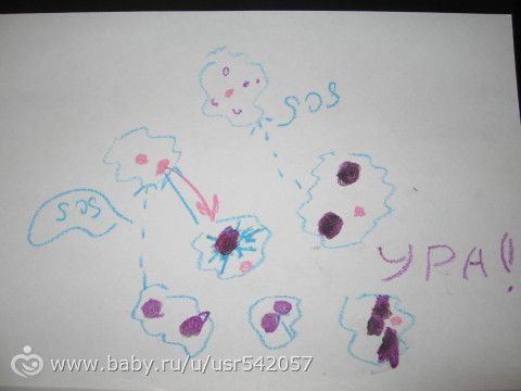 А еще вчера перед сном мы с Лидой рисовали, как злые вирусы разрастаются в клетках и клетки вырабатывают интерферон и убивают вирусы. Рисовала все Лида, предложила я. В свое время она намучилась с больницами, уколами и теперь очень боится, что опять до такого дойдет. после этого рисунка спокойно заснула и спала хорошо.
