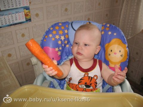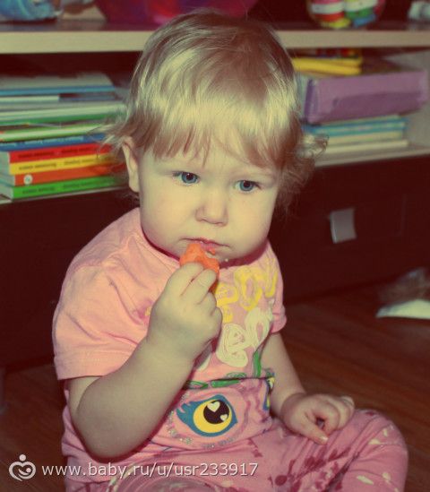 Дочка следила за процессом! И потом уплетала морковку) У нее уже 12 зубов, так что пользуется ими во всю))))