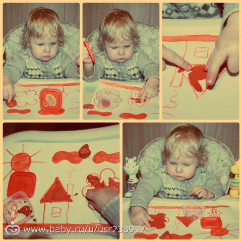 ничего не получалось) то грызла карандаш, то стучала им)) в итоге я при любом удобном случае или сама рисовала (она смотрела как это делать) или лист с ручкой ей подсовывала))))