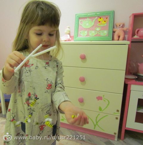 очень полезное занятие получилось таких пчелок «попасти»))) Ниточки же можно и переделать, думаю дочка бы еще поиграла так)))Красиво у вас в детской!