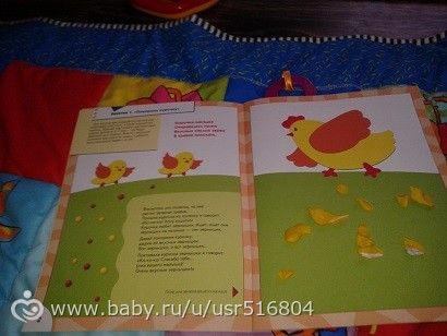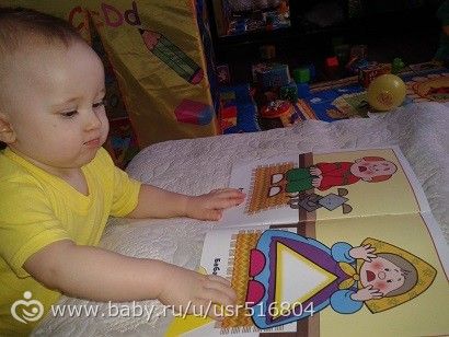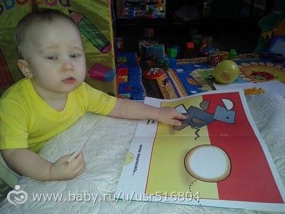 дальше пошли читать сказку «курочка ряба», где заодно смотрели картинки, повторяли формы и нашли свой домик желтому треугольнику))мама помогла конечно))