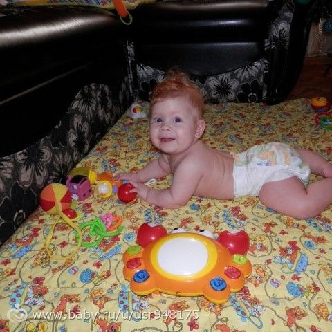 Бороздит на пузе повсюду! На месте не сидит вообще! Появились новые слова-знать бы еще что они значат:-) очень любит папу! Когда тот приходит с работы готов выпрыгнуть из кровати к нему на ручки. Еще бы!!! С папой они летают:-)