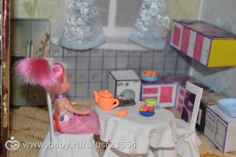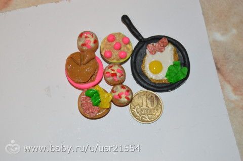 сделали дочке домик с мужем на новый год, своими руками, а сейчас мне с китая пришла глина полимерная и я решила впервые испробовать ее в деле… слепить дочке что-то для кухонки, съедобное… я замучилась, но кое-что приготовила)) можете посмеяться, что я криворучка, мне все равно нравится и я на этом не остановлюсь)