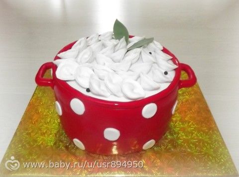 Тортик «Кастрюлька с пельмешками», внутри шоколадный бисквит и нежный крем сливки+ссливочный сыр с орехами: