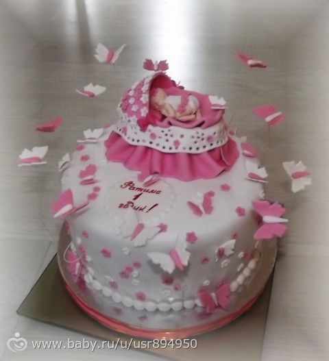 Ну, и тортик на годик, внутри микс- банан, апельсин, киви в сливках: