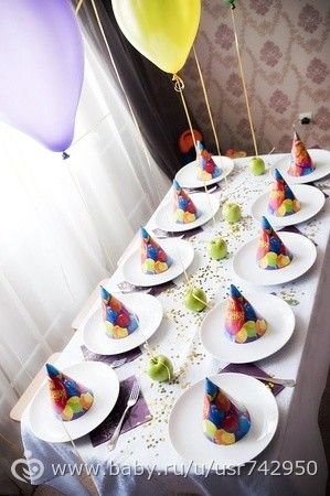 Шапочки, яркие трубочки, разноцветные бумажные салфетки