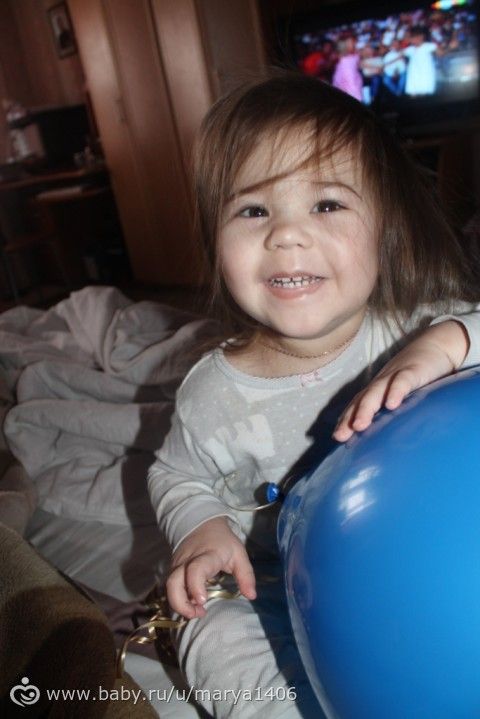 Вчера папа наш дежурил, поэтому мы провели день дома. Украсили комнату шариками (Олечка, огромное спасибо тебе за такое чудесное настроение в нашем доме!!!!!!