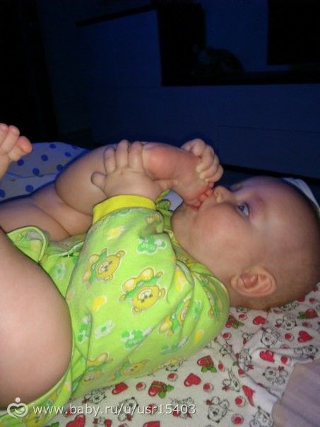нам одиннадцать почти, в 6 мес. ладушки делала ладошками, а вот уже месяца 2-3 хватает ноги руками и делает ногами, мы ржем))))
