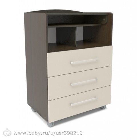 во, у нас 1 вариант был. Честно говоря мне не нравится. Мне не нравится то, что детские вещи, то носочки, то маячки и т.д., все мелкое… А эти три больших ящика… все вечно потом в хаосе лежит. Постоянно раскладывала… Продали! Сейчас пользуемся типа такого. Класс, ящички маленькие. В одном трусики, маячки, в другом, носочки, в другом колготки… Конечно, удобно, что есть пеленальный стол. Но по мне, он нужен максимум 1 месяц. Ради месяца мучится.