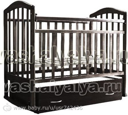 у нас деревянная с маятником (убирается)несколько уровней дна кровати (менять в зависимости от возраста) внизу ящик, спереди бортик поднимается с возрастом (держатели пластмассовые это плохо, пришлось модернизировать самим) снизу ящик для одежды