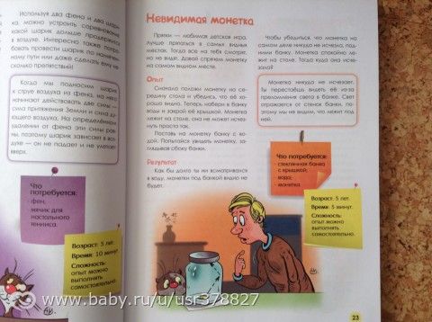 А здесь очень много интересных опытов, которые не требуют ни особой подготовки, ни сложных материалов- ( шарик, монетка, банка, листок бумаги.....)