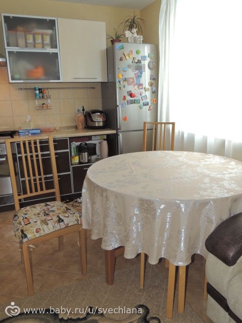 Собрала сумку к гинекологу и собрала еду мужу. Проводила Дашу в школу, а сама в ЖК пошла. Простояла в очереди 40 минут и узнала, что моя Г не работает. Домой. Дома прибрала по верхам, погладила белье и отшитый заказ. Поставила обед готовить, протерла пол и ко мне пришла заказчица. Поболтали. Она ушла и я выкроила еще один заказ. Пришла Даша, мы поели и я повезла ее на английский. Пока она там я отвезла заказ — 2 скатерти на стол и три накидки на стулья. Плюсом в подарок еще и прихватки в этом стиле отшила, но не сфотала.