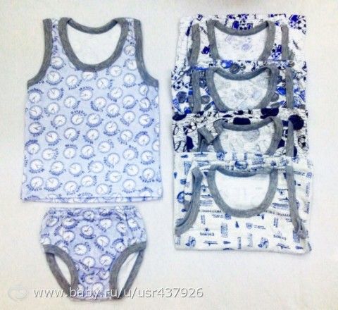ОДЕВАЮ В ОСНОВНОМ ФУТБОЛКИ, иногда майки, трусики обычные не боксеры, набор трусы+майки нет.